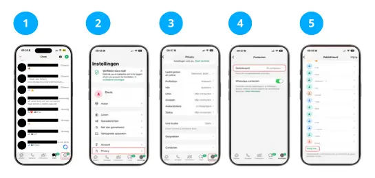 WhatsApp-contacten blokkeren doe je zodat je geen berichten meer ontvangt of gebeld kan worden door dit nummer. Dit kan je bijvoorbeeld doen bij spam of oplichting. Daarnaast kan het blokkeren van een contact helpen om rust en privacy te behouden. Je voorkomt ongewenste berichten, vervelende gesprekken of herhaald contact dat je liever niet meer wilt. Ook bij conflicten of na het verbreken van contact kan blokkeren een handige oplossing zijn.